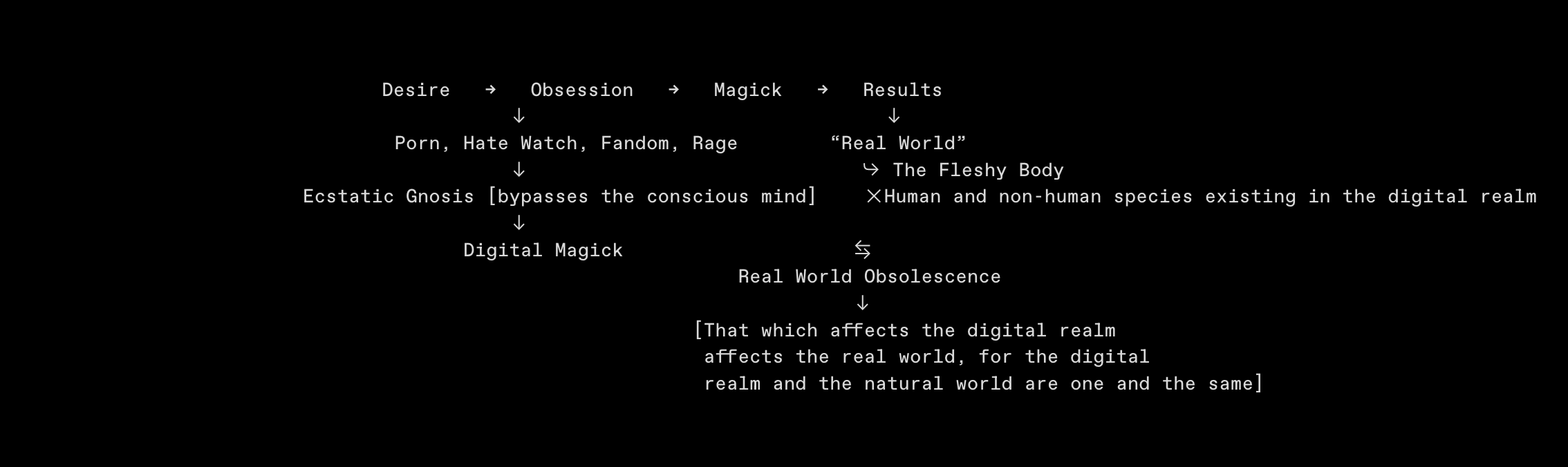 Like a mobious strip, online and reality are looped together in a single boundary curve, its turns indistinguishable. A never-ending loop of desire and obsession, voyeur and exhibition, being and seeing, consumption and regurgitation.